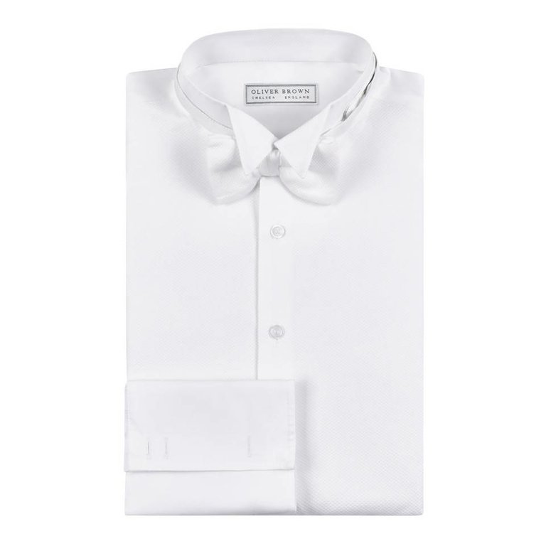 Marcella Dress Shirt : White Marcella Rib Front Dress shirt - Edgar Jerome : Marcella patterning on the collar, cuffs & dickie & a plain body.